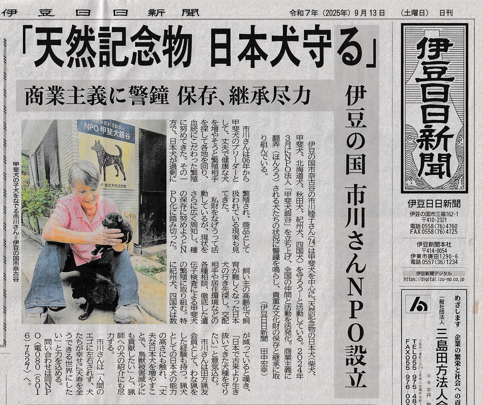 天然記念物指定とされる日本古来の甲斐犬保存を目的に、